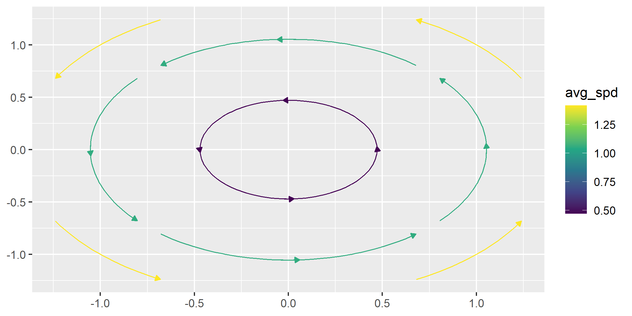 geom_stream_field(fun = f, grid = custom, normalize = FALSE, center = FALSE, L = 4)