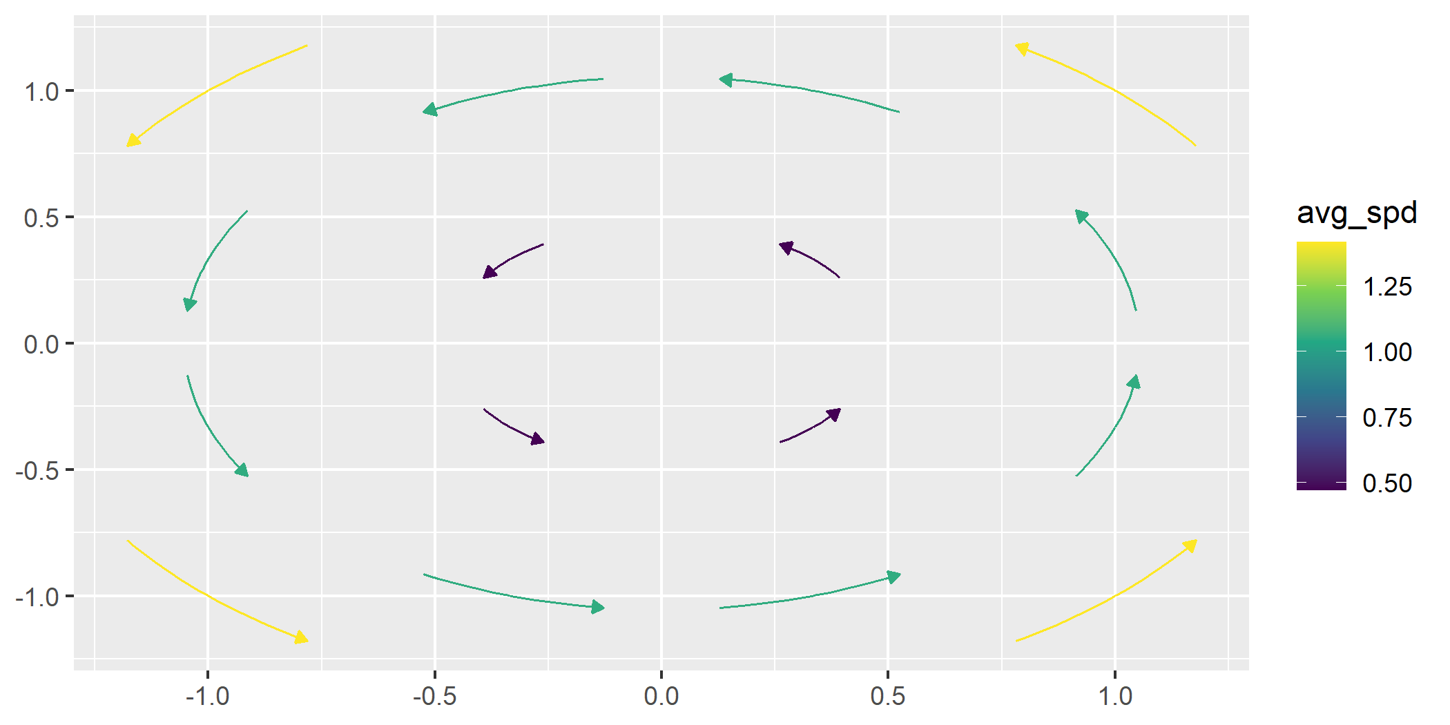 geom_vector_smooth()Provides smoothed estimates of vector fields by applying statistical techniques to observed vectors.