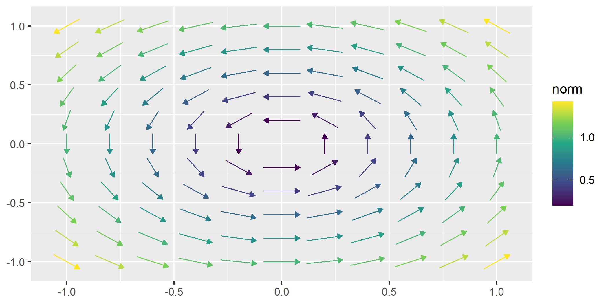color.f <- function(v) c(-v[2], v[1]) # Define a function for the field