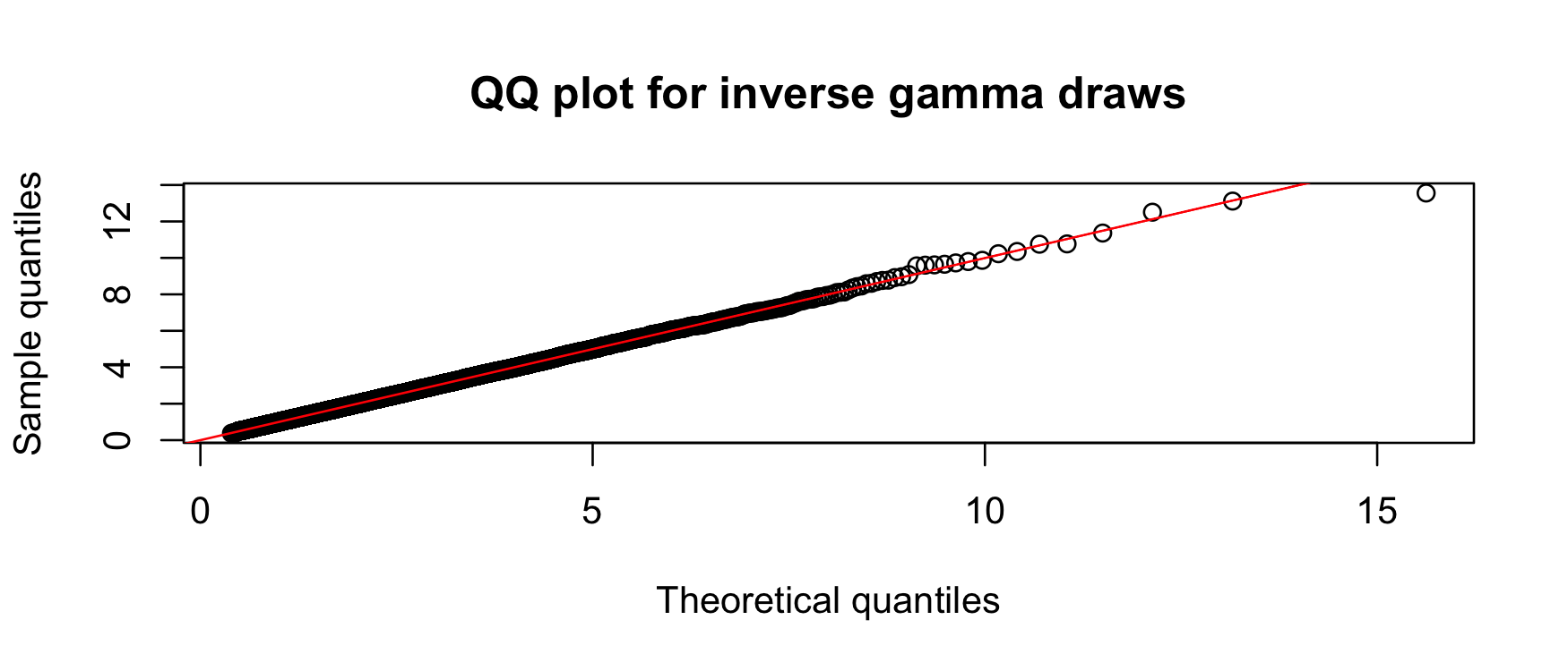 # [1] 2.640734 1.364965 1.342591 2.095975 1.273201rinvgamma() can be used to obtain a Monte Carlo