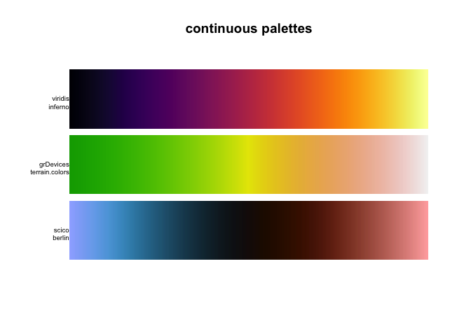 Lastly we have the continuous palettes which provides as many colors as you need for a smooth transition of color: