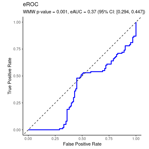#> U = 3705, eAUC = 0.370, p-value = 0.001106, method = EU