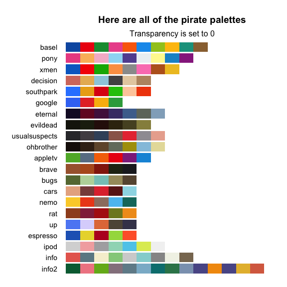 piratepal() is a function that returns color palettes. See ?piratepal for more details