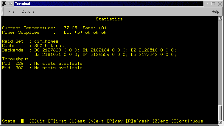 3.9.100     STATS - Print cumulative performance statistics on a Raid Set or Cache Range