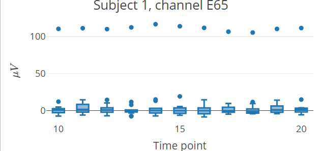 This is a basic example which shows how to plot interactive epoch boxplots from chosen electrode in different time points for one subject: