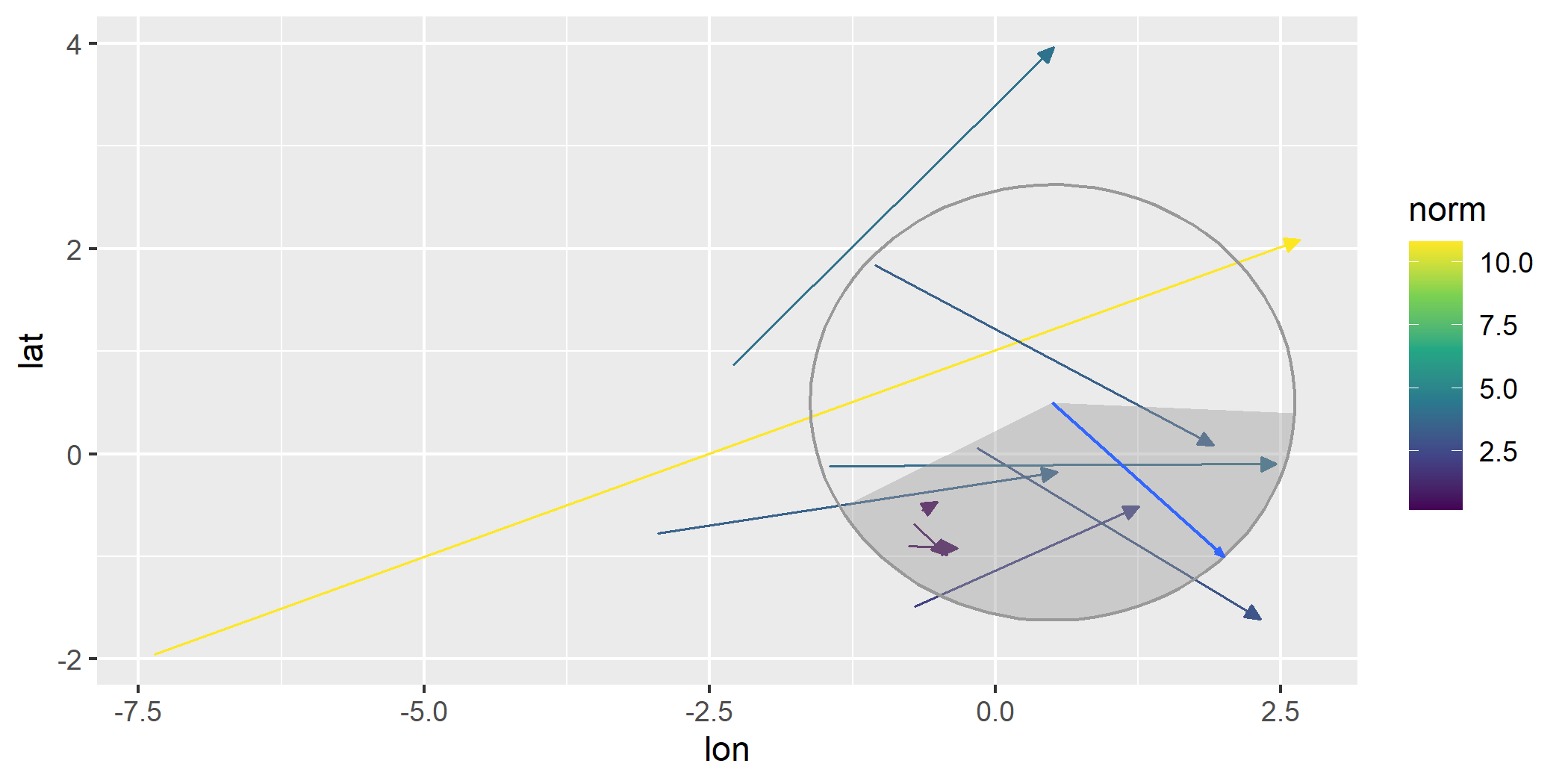 geom_vector(aes(x = lon, y = lat, xend = xend, yend = yend))
