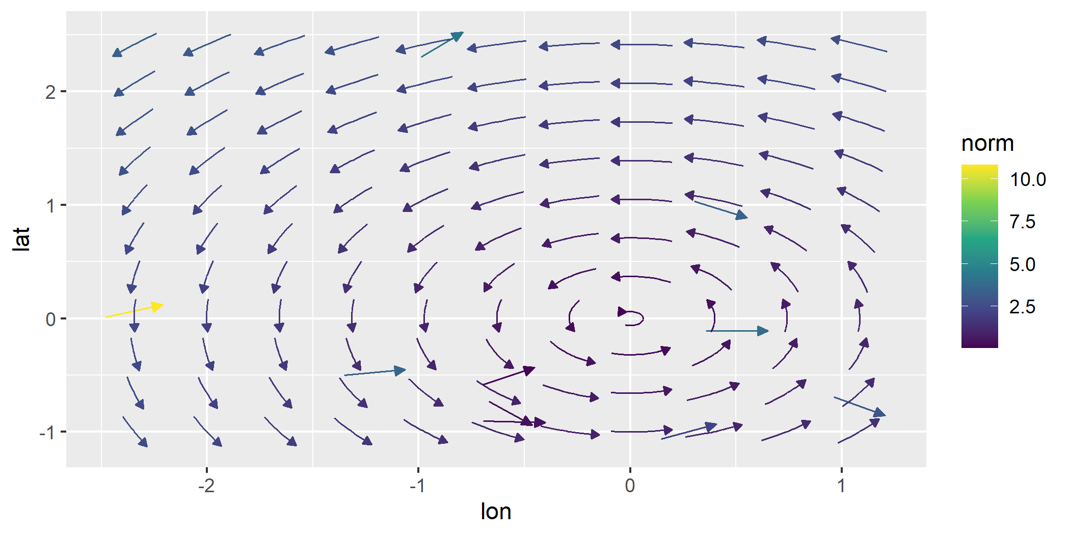 ggplot(data = wind_data, aes(x = lon, y = lat, fx = fx, fy = fy)) +