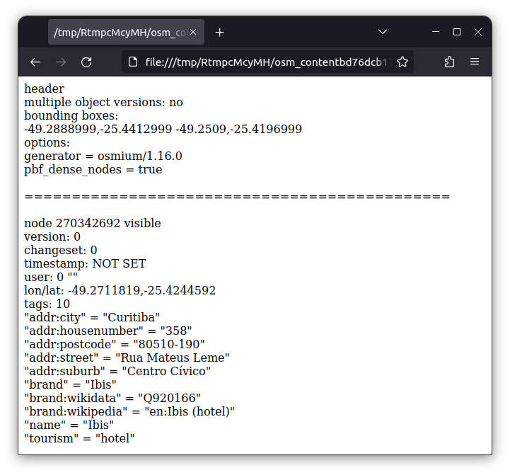 #> [6] "\"addr:city\"=>\"Curitiba\",\"addr:country\"=>\"BR\",\"addr:housenumber\"=>\"965\",\"addr:street\"=>\"Rua José de Alencar\""show_content()Finally, show_content() displays the content of an OSM