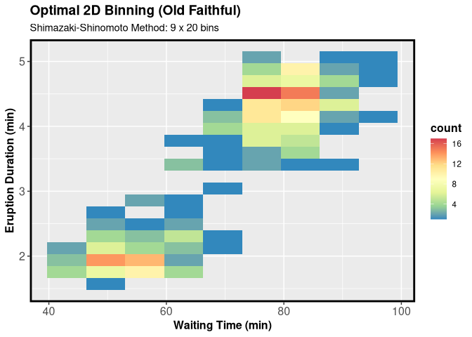 res2d <- sshist_2d(faithful$waiting, faithful$eruptions )