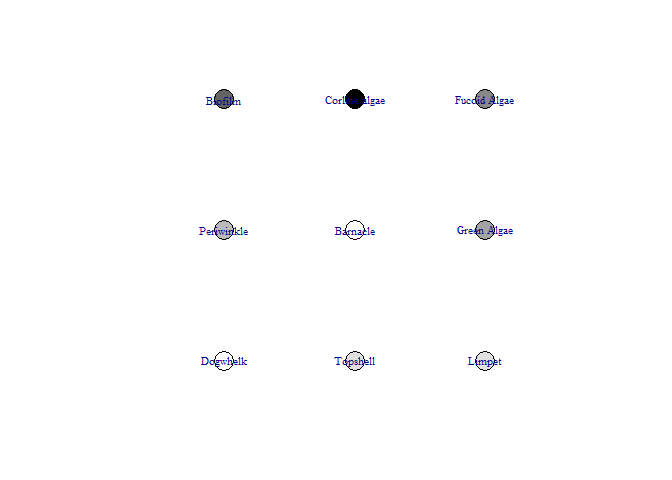 #> 6 -3 -1The details of this interaction matrix are discussed in the main text of the paper, which is under review in Ecological Informatics [we will update this shortly]. Essentially it explains direct interactions between what is here the species or taxon in the row on the species or taxon in the column.