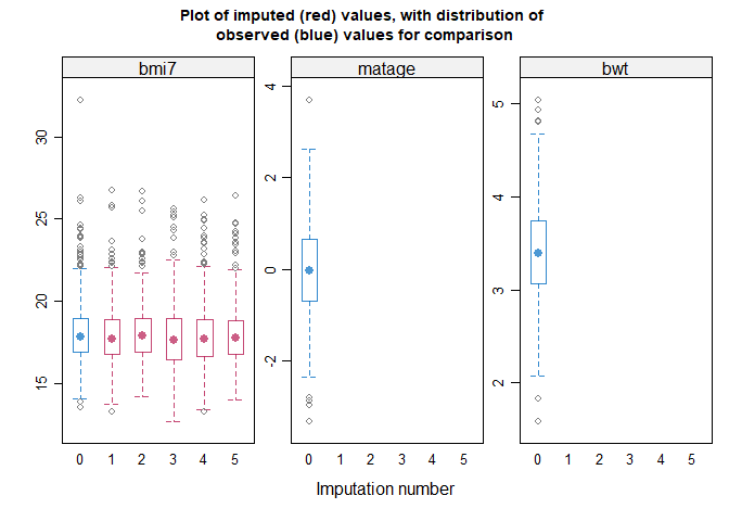 checkMI(dep="bmi7", preds="matage mated pregsize", r_dep="r",