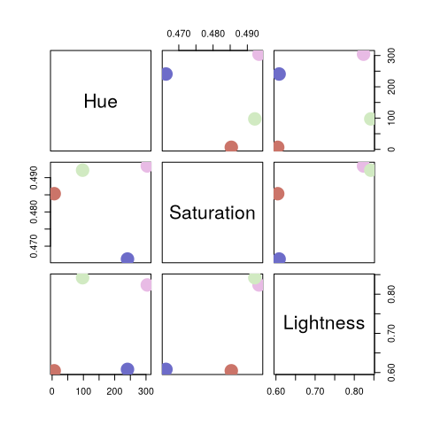 Or it might be plotted in one of the provided color spaces as a scatterplot matrix.